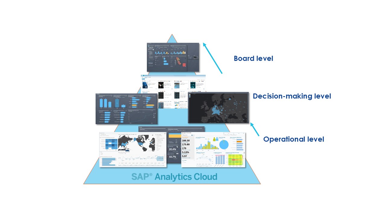 In SAP Analytics Cloud, Reporting works at three levels: operational, decision-making, and board.