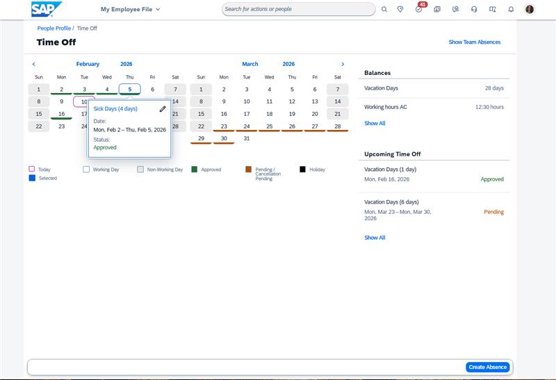 SAP SuccessFactors Time Off view