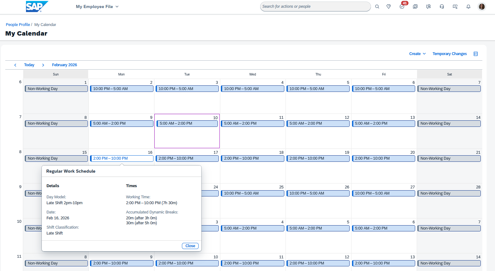 SAP SuccessFactors My Calendar view