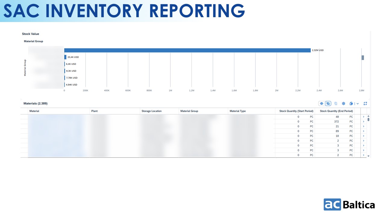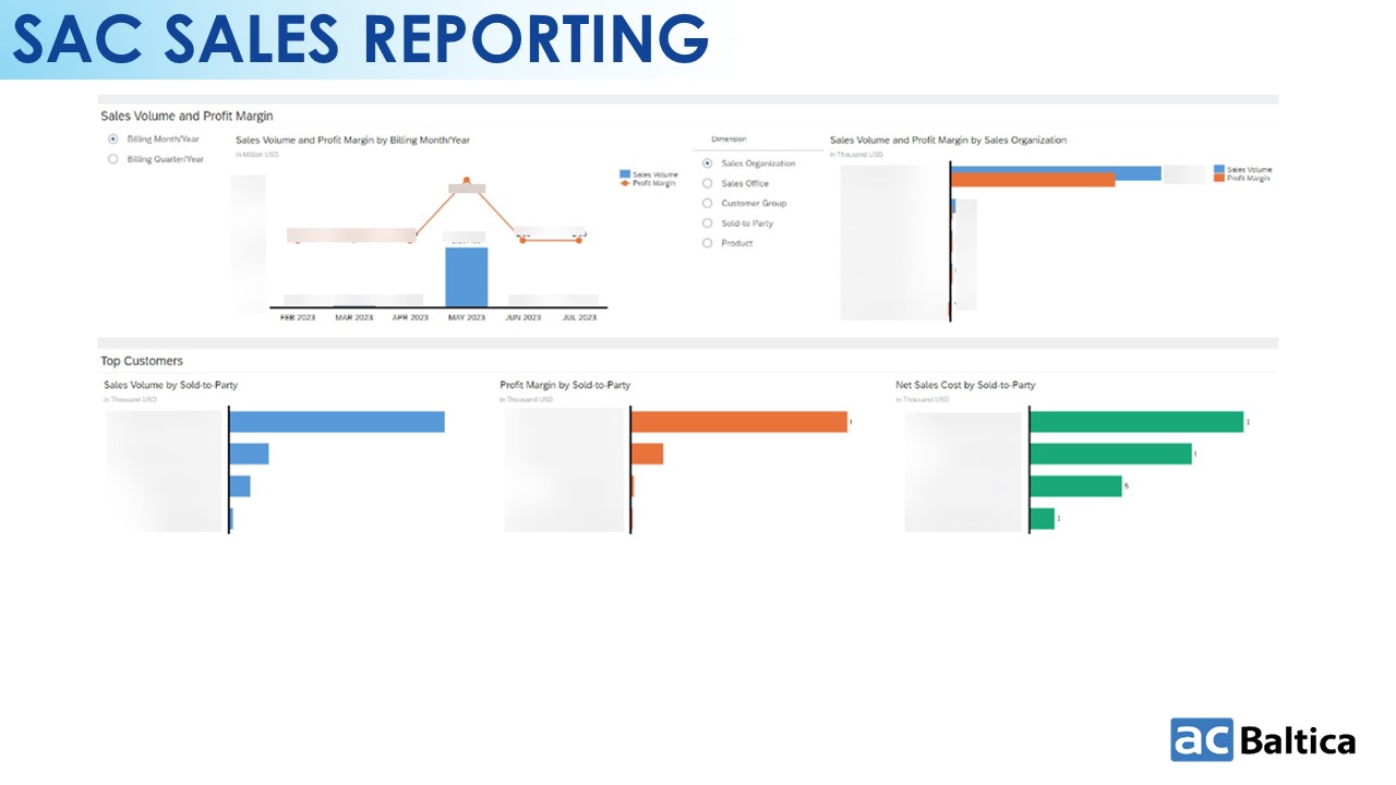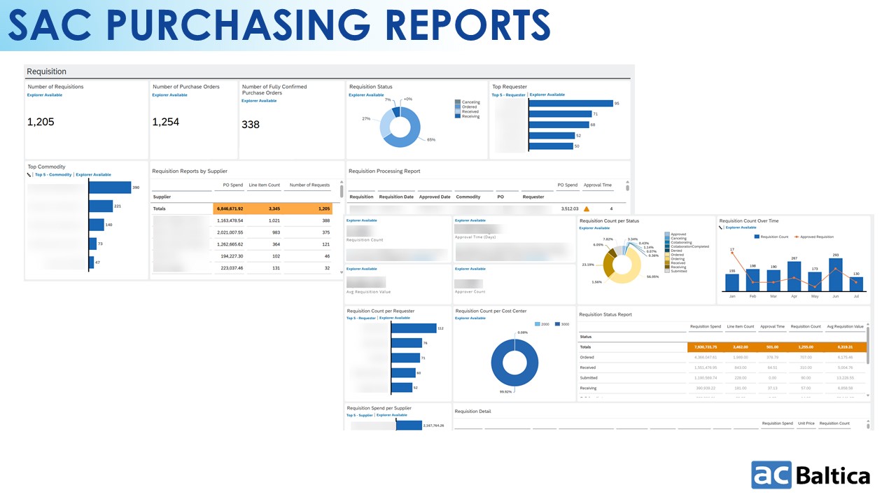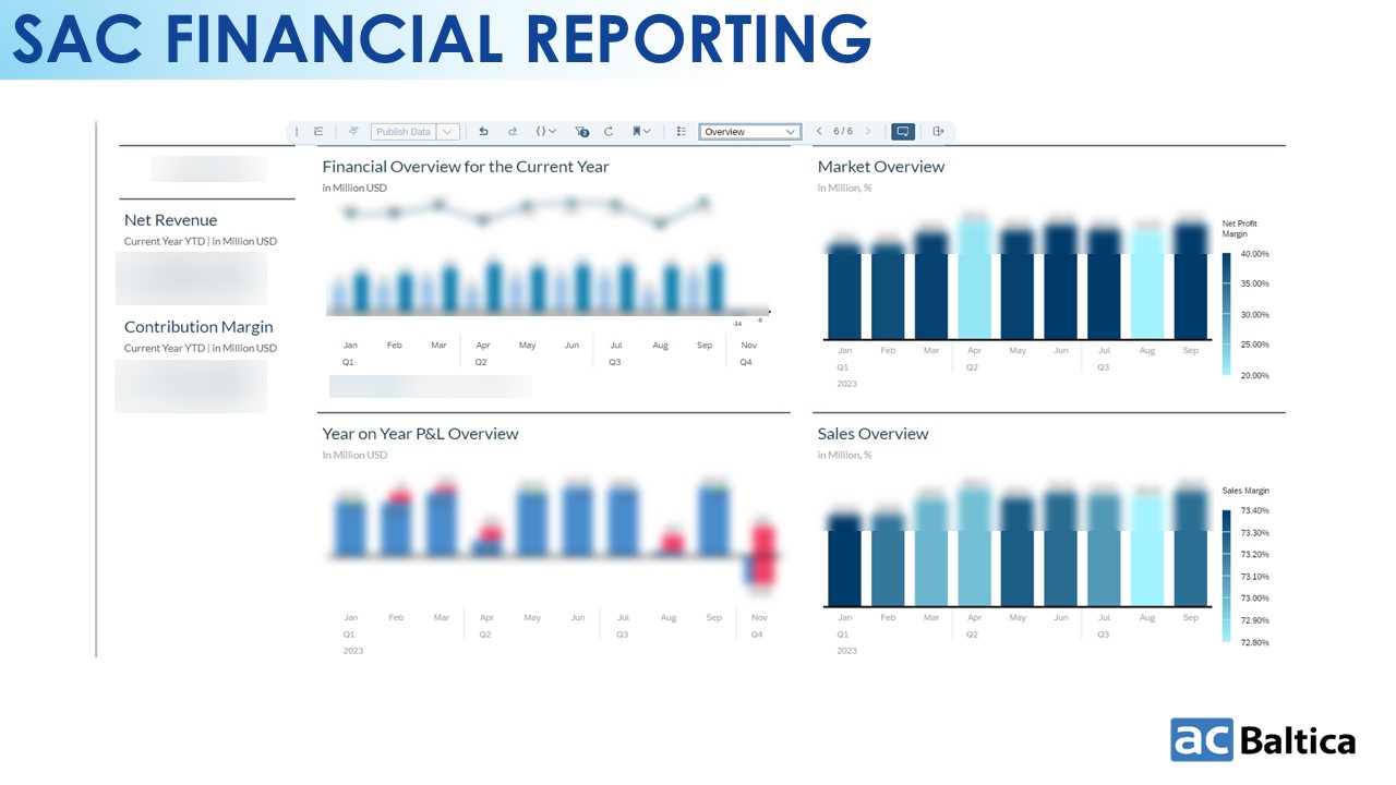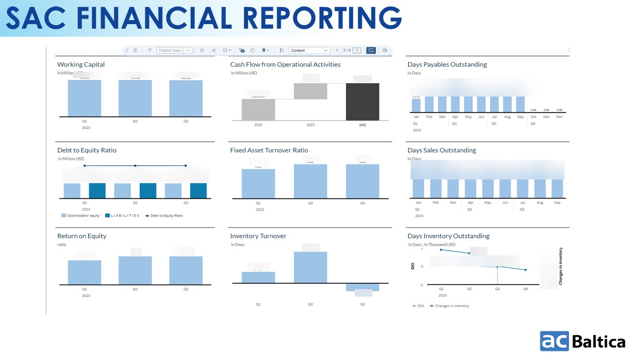 To address these challenges, ACBaltica developed and implemented an integrated reporting system based on SAP ERP and SAP Analytics Cloud (SAC). The solution connects data from finance, supply chain, and sales, enabling real-time insights and standardized reporting for both internal and external users.